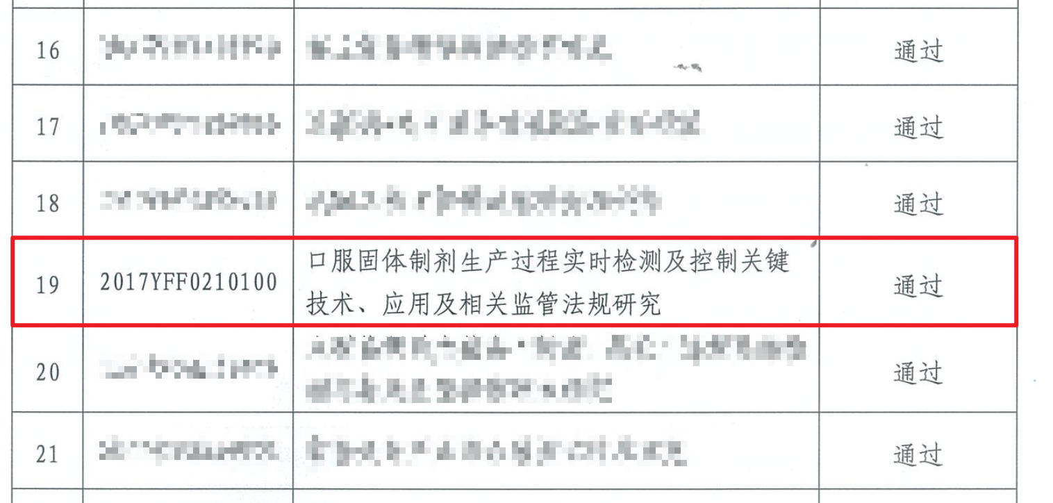 2021年11月,香蕉视频在线观看免费光电参与由上海医药集团股份有限公司牵头承担的NQI专项《口服固体制剂生产过程实时检测及控制关键技术、应用及相关监管法规研究》(2017YFF0210100),项目综合绩效评价结果为通过。